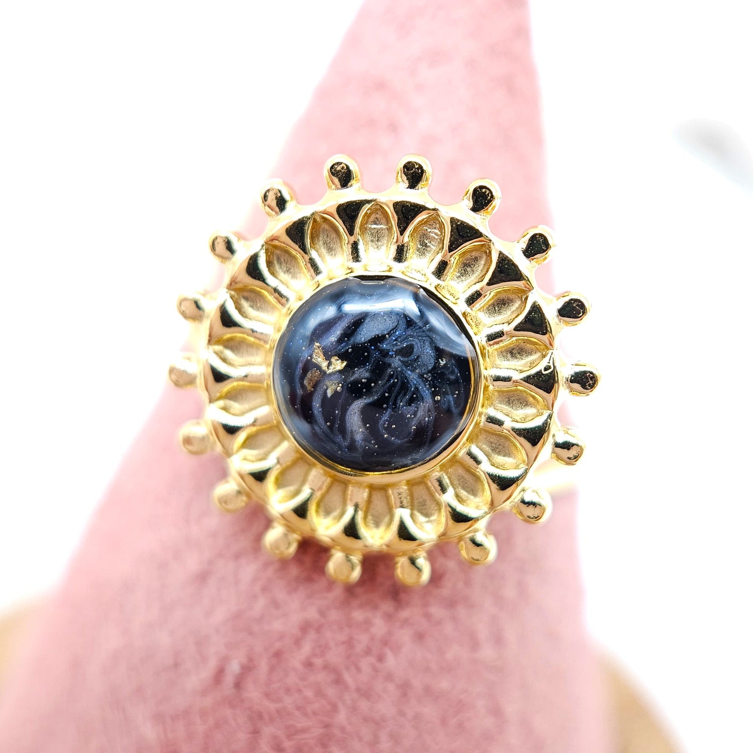 Chacune des pierres est fabriquée sur mesure en résine non-toxique, stabilisée anti-UV et de qualité supérieure. Elles sont fabriquées et montées à la main par mes soins sur des montures en gold filled 14K et acier inoxydable. Chaque modèle est disponible en quantité limitée. Je prends soin de chaque pièce avec amour, en capturant chaque souvenir de la manière la plus précieuse possible.