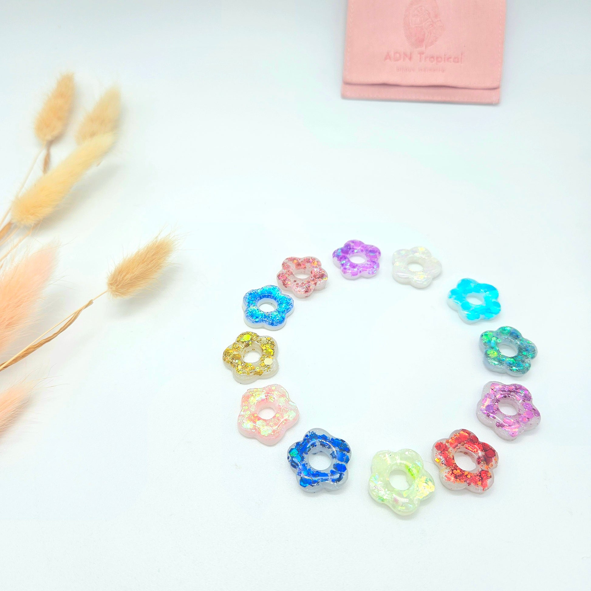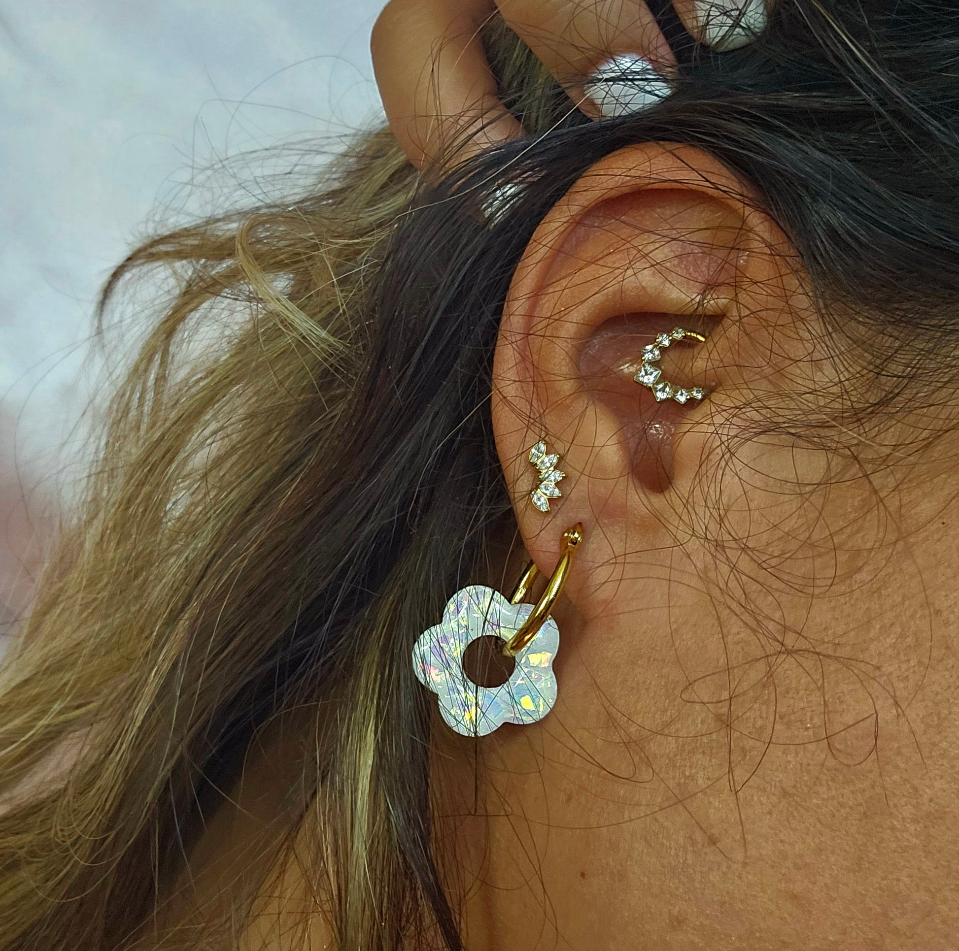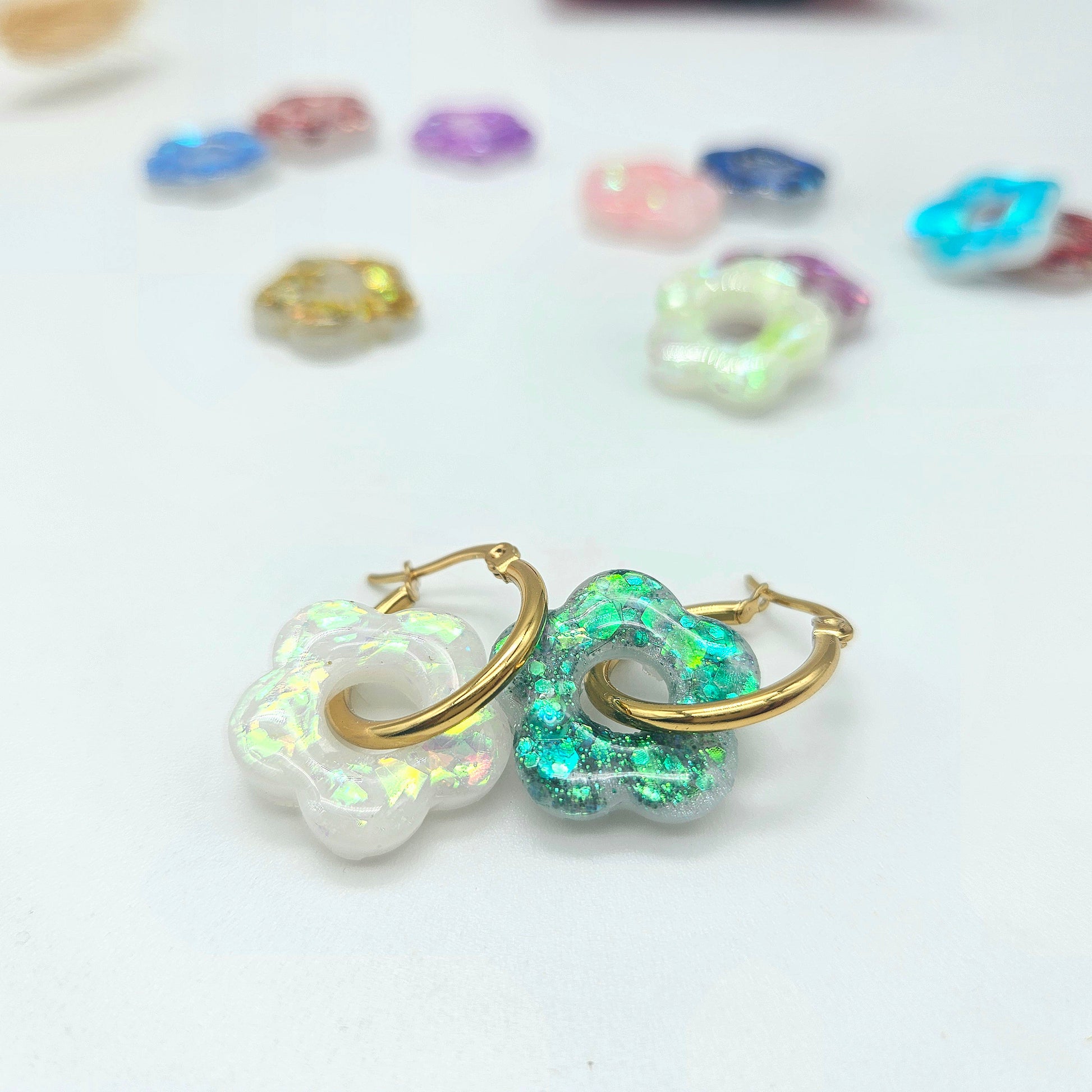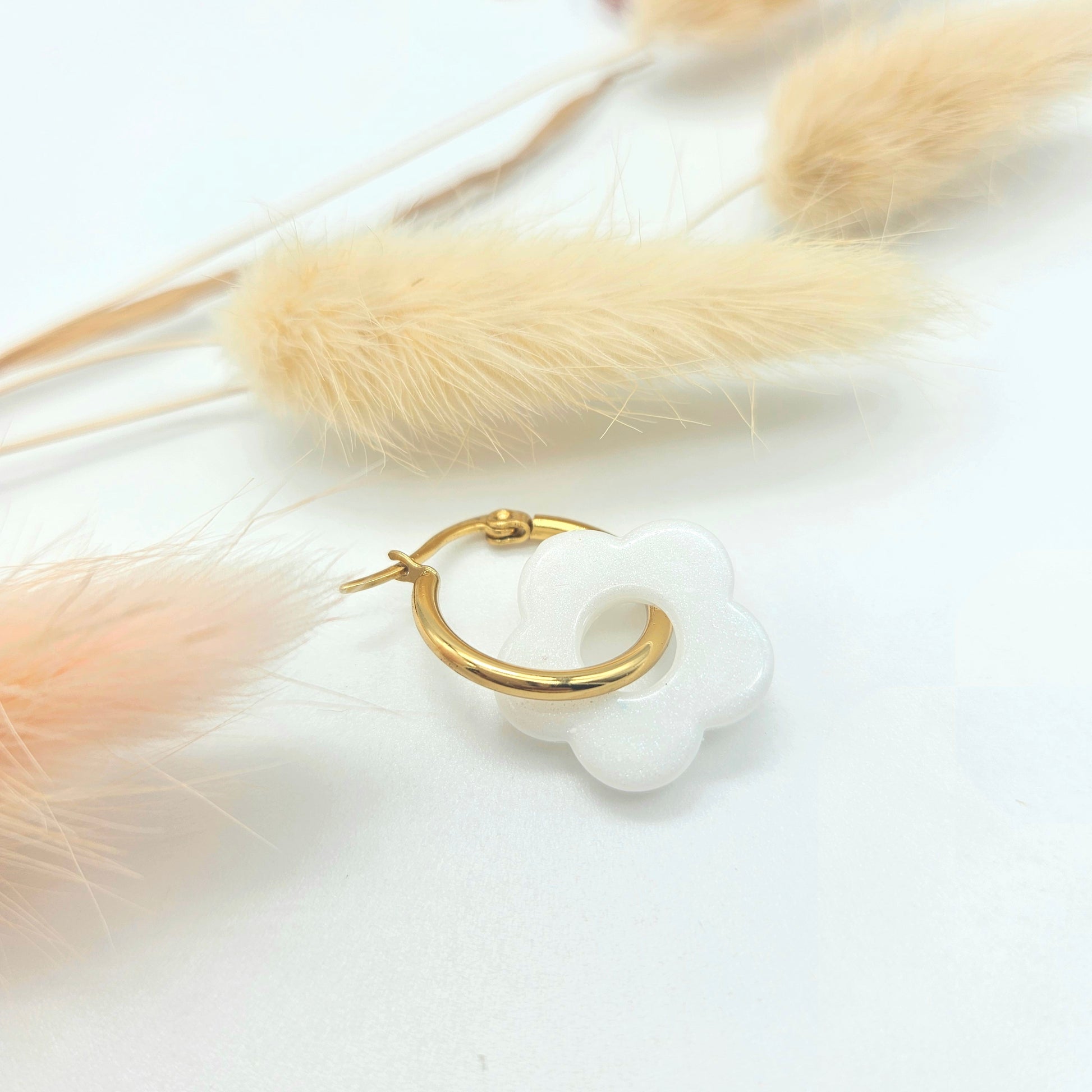 Boucles d'oreilles créoles composées d'une paire de pampilles fleurs lactées, réversibles et amovibles, aux couleurs de mois de naissance ou sans ajout de couleur; tendances et symboliques!